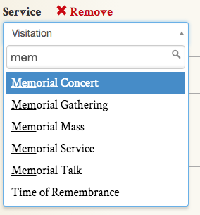 Custom service types will be accessible on all obituaries and can be selected from the drop-down menu once added to the website.
