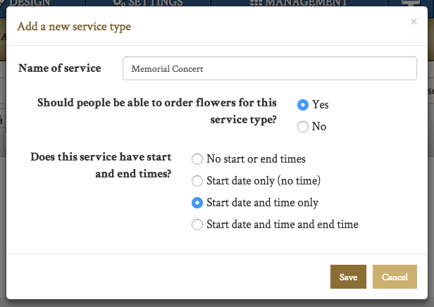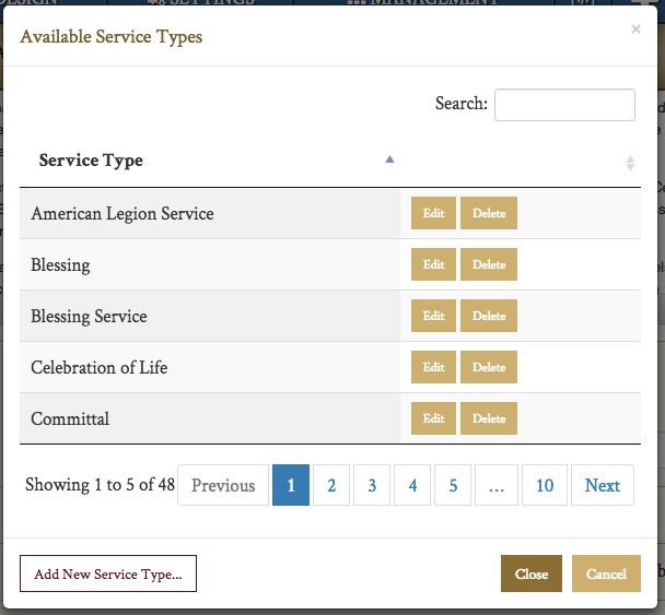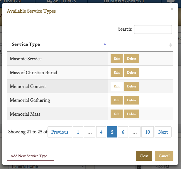If your funeral home offers a specific service type not included, or if a family is holding a unique event, you can add additional service types to your website.