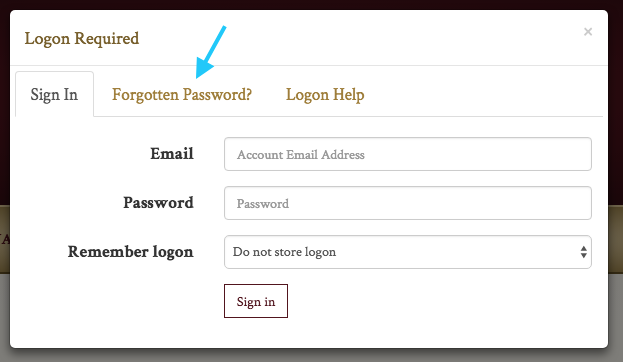 If you have forgotten your password, enter your email in the “Forgotten Password?” tab in the login box.