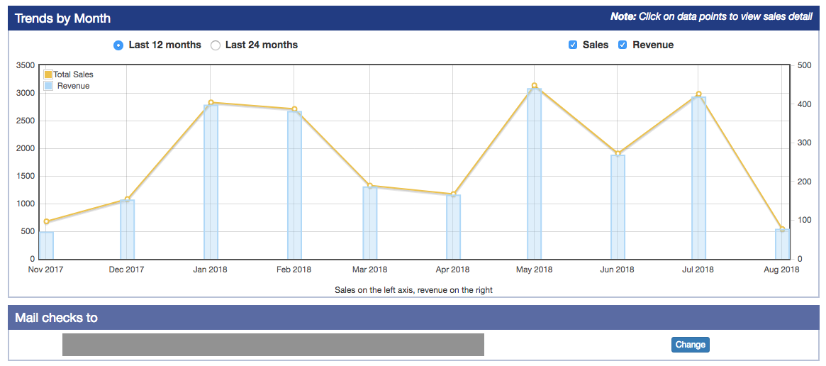 From the main dashboard, click on the “View Details” button underneath your site sales and revenue overview.