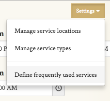 To configure this feature, click on the “Settings” button in the “Services” section. From the drop-down menu, click on “Define frequently used services.”