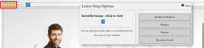 To toggle between site-wide or page specific settings, click the page specific or site-wide button beside options.
