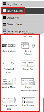 Smart objects are elements that can be added to the page that have specific functionality built into them.