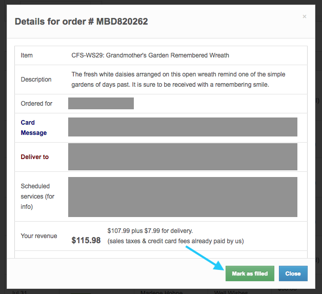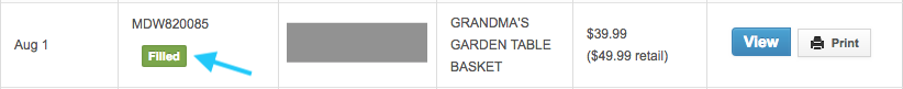 To help organize your orders, you can mark the ones you have already filled and delivered. While in the “Your Orders” section of the portal, select the blue “View” button on the far right of the order listing.