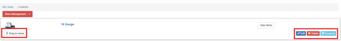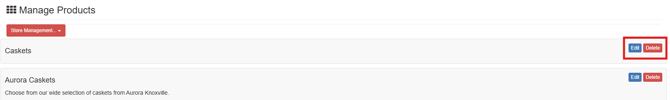 Under the manage products page you will see the various product lines that are on your website. Product lines can be edited or deleted via the edit and delete button on the far right side.