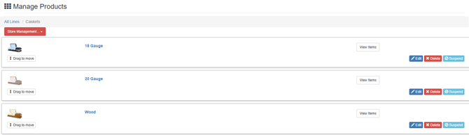 The store management drop down at the top of the page will allow you to add new product lines, either custom product lines or stock product lines provided by CFS.