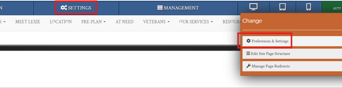 To add Social Media Links, go to the settings button at the top of the website and select "Preferences and Settings".
