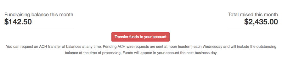 Funds collected on your website through crowdfunding can be transferred to your bank account in the “Management” section.