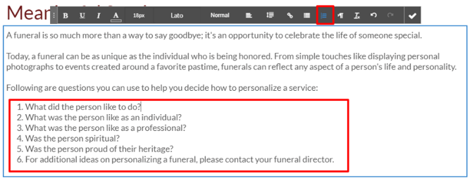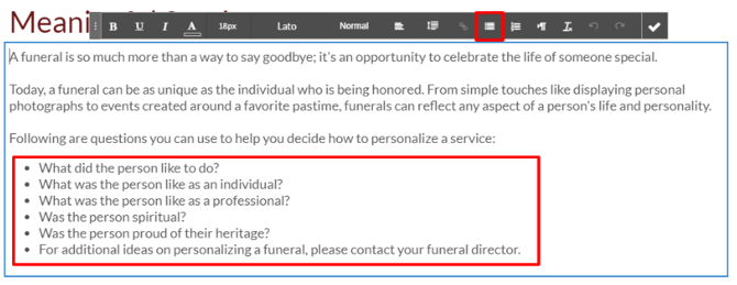 Create a bullet or number list using the text tools inside the Paragraph widget. Lists are a good way to group content, features, or products so that visitors can quickly understand and compare information.