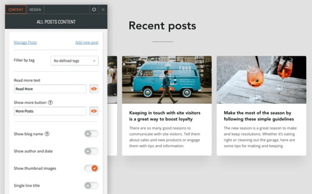 The All Posts widget allows you to display posts from your blog anywhere on your site, boosting blog traffic and engagement.