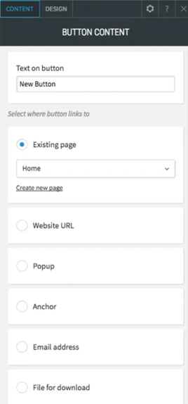 Use the content editor to select a button destination. The following destinations can be set for your button: