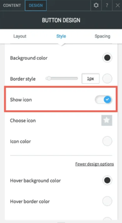 Use the design editor to choose between the different button layouts, make edits to the button style (width, height) and button text (font, text size), and adjust the inner and outer spacing. You can also make edits to button design by using the global button design menu.