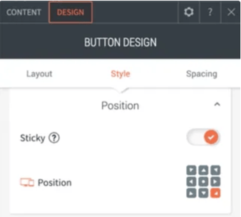 Sticky buttons allow you to keep a button visible at all times, even when a visitor scrolls down the page. Use sticky buttons to keep important calls to action fixed, visible, and clickable on all site pages.Click the button widget to bring up the Context menu.