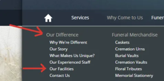 Using the example image, you will see the page called Our Difference (known as the parent page) which has 6 sub-pages below, one that is called Our Facilities (known as the child pages).