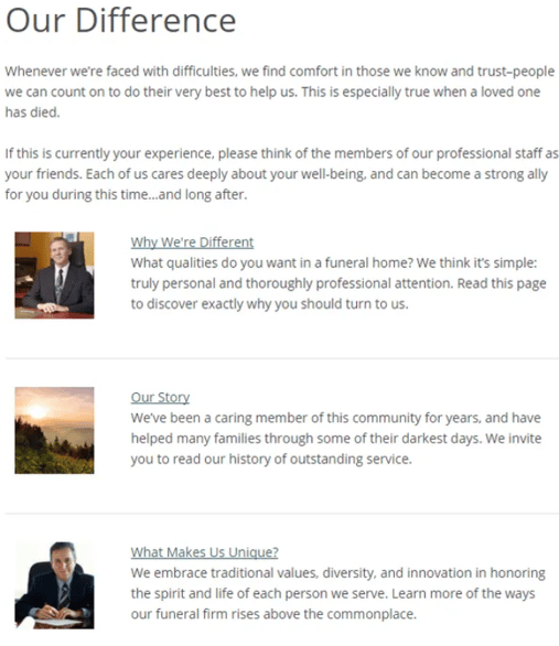 When the Our Difference page is clicked on, the page loads the sub-pages. This is because the Our Difference page is set as a Child Browser Module.