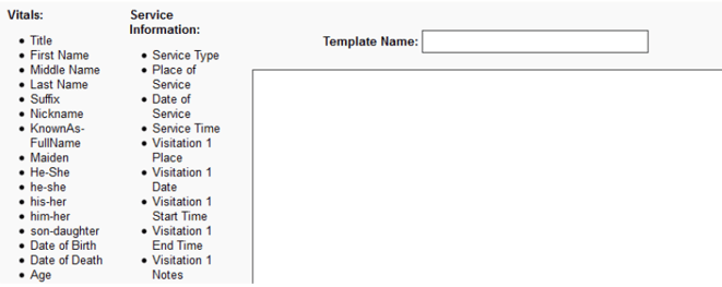 This section allows you to create your own obituary templates to speed up the obituary creation process. The templates provide starting points for an obituary that can be modified and saved for each individual.