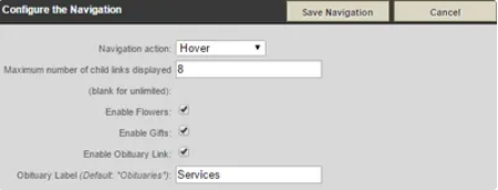 You can also enable flowers and obituary links on the main menu by checking the applicable boxes.