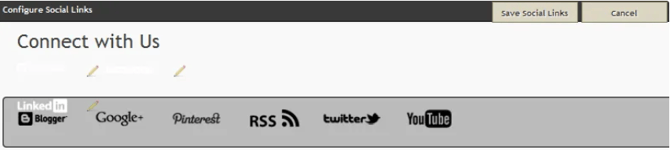 A pencil’ icon will appear beside each logo added. Click the pencil to add the URL to your social media account.