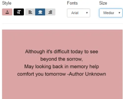 Condolence: choose from a list of condolences posted in the Book of Memories.