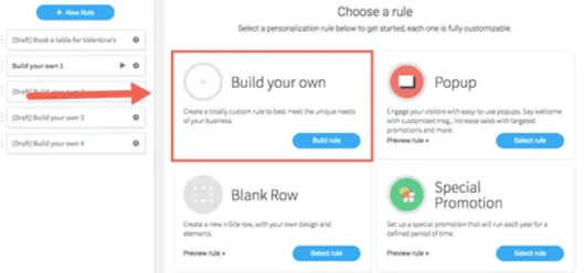 You can build your own personalization rules from scratch. Select and customize the triggers and actions for your personalization rule instead of selecting a pre-made rule.
