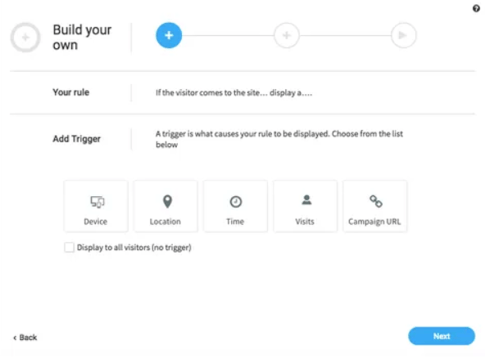 Triggers allow you to define a set of conditions that, when met, automatically execute a specific action on your site. Combine a variety of triggers like time, device-type, or location to create a very customized experience for your Site's visitors.