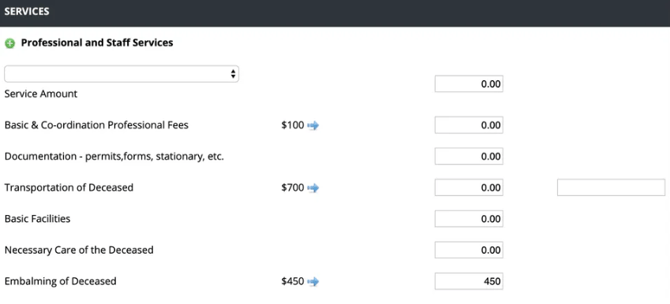 ** The service pricing is not the same thing as the Service Types in the Setup > Quickfill & System Static area. Add the different types of Services offered (i.e. Memorial, Graveside, etc.) via the Setup tab and optionally, add pricing setups in the Service/Pricing area.
