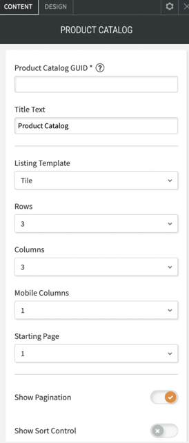 The product catalog widget allows you to customize catalogs of products to be laid out based on product type, category and price.