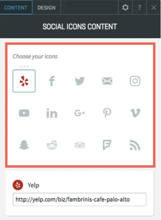 Once the widget has been placed, the Content Editor will appear. Here, you can choose the social icons you want to include on your website.