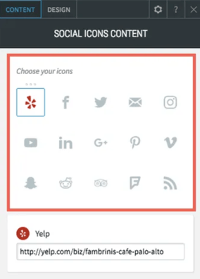 Once the widget has been placed, the Content Editor will appear. Here, you can choose the social icons you want to include on your website.