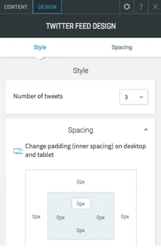 Use the Design tab to regulate the number of tweets shown on the feed. You can also make edits to the spacing.