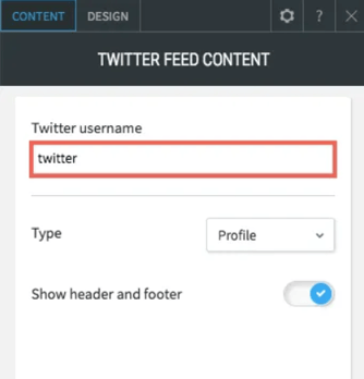 The Content Editor will appear. Add your Twitter username in order to connect your account to the Twitter feed.