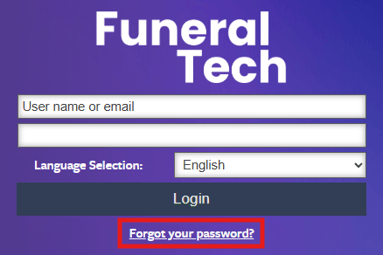 If you know what your system's deployment link is, you can also utilize that link to get to the login page. These links will contain "funeraltechweb.com" with a subdomain added in front. For example, testfuneralhome.funeraltechweb.com/admin/.