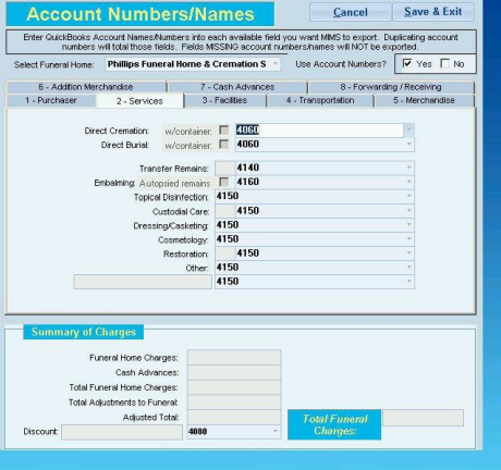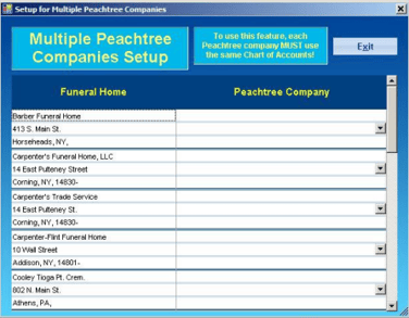- In the new window select the company file to be used against each funeral home entered in MiMS.