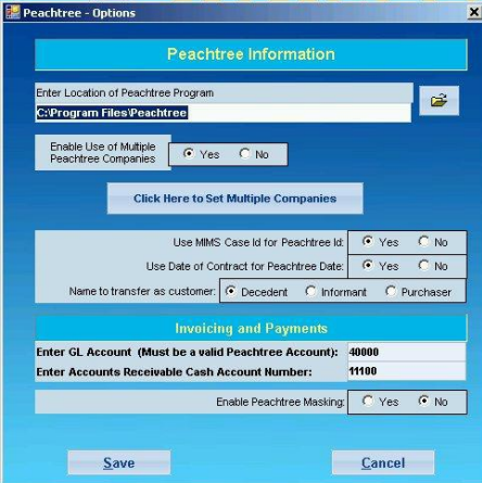 - Enable Peachtree Masking -- If Masking is being used in Peachtree set it to Yes.