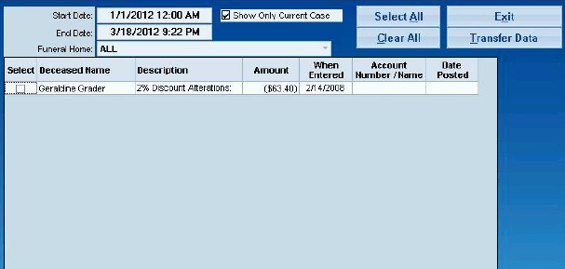 - In the Select column, choose the Alteration to transfer to Quickbooks/Peachtree and click on the Transfer Data button.