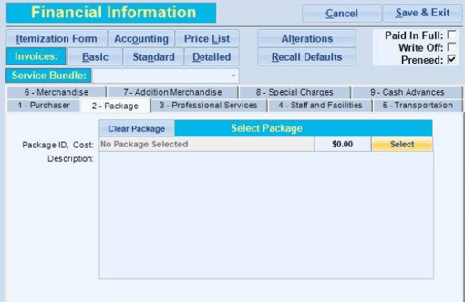 Finance Packages are used on Tab 2 – Package of the Finance area.