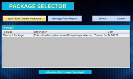 - In the new window choose the package you want to use and click “Select” or click the “Add/Edit/Delete” button to work with your Finance Packages.