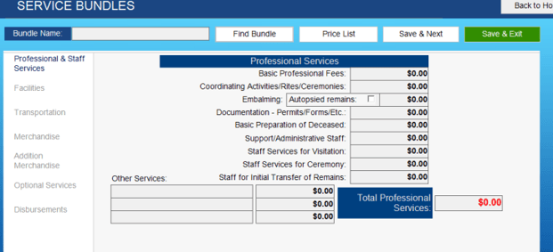 Service Bundles are a way to provide several services / items under 1 easy selectable option. For example if you have 5 things that you always provide with a traditional funeral, then you could setup a service bundle for traditional funerals that already has the 5 items included in it.
