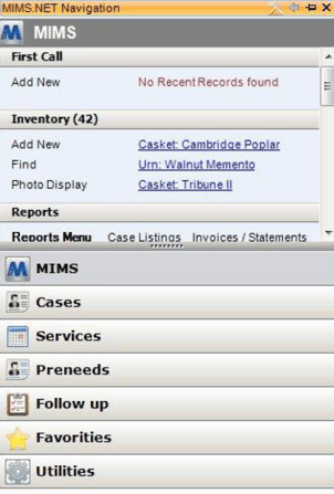 The Navigation Pane is located on the left side of MiMS and has several options available to choose from.