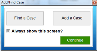 - From the Main Menu screen, click on Case Info. A new window will open, asking if you want to "Find a Case" or "Add a Case".
