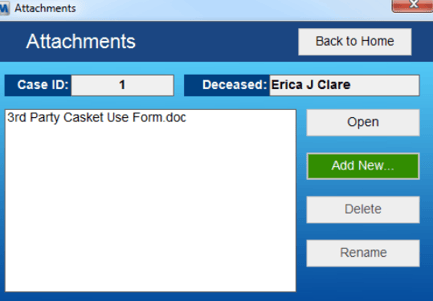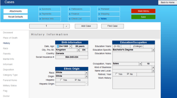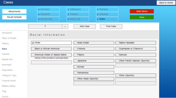 **Please make sure that the Funeral Home section under the Setup menu has been filled out with your funeral home's information before entering a case.