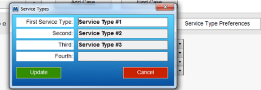 The designations for these fields can be modified by clicking on the Service Type Preferences button.