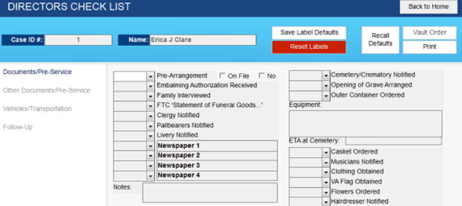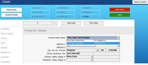 Funeral Home allows those facilities with more than one location to designate which location will be handling the case. In addition, it lets you designate which directors are assigned to the case.