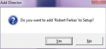 You can use the drop-down to select Directors you have already entered. If you click in the Director or Embalmer drop-down menu field, you are able to type in additional names. However, you will be given this message: