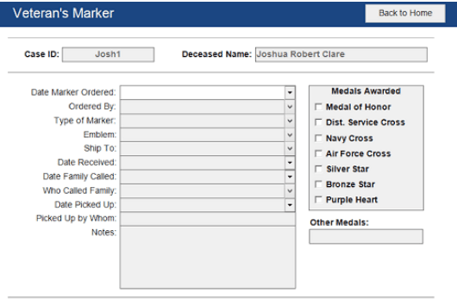 The Veteran's Marker button (U.S. ONLY) will open up a pop-up Window where you can fill out