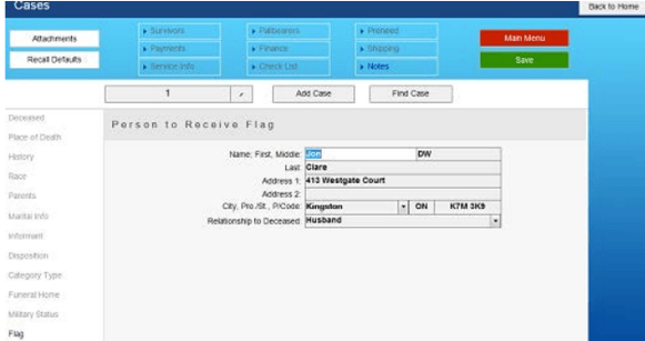 The flag tab will pertain to cases where the individual served in the armed forces/military and will receive a flag at the funeral ceremony.
