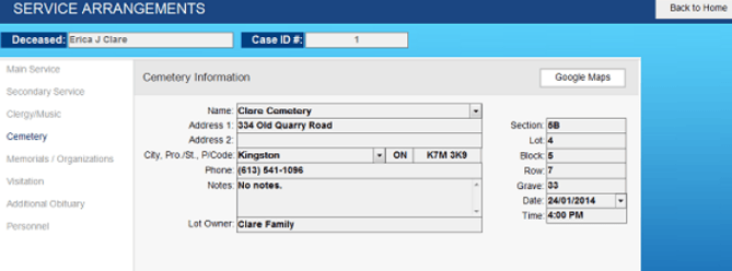 Use the Google Maps button to link the entered cemetery / crypt space to a Google Map of the cemetery/crypt.