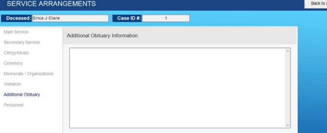 Additional Obituary is for typing additional information that you wish to appear in your obituaries or death notices.