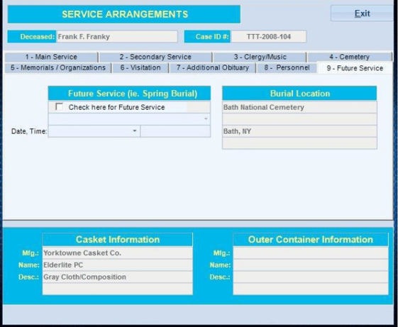 This information is used in Types of Service reports so you can more accurately track your funeral home's business.