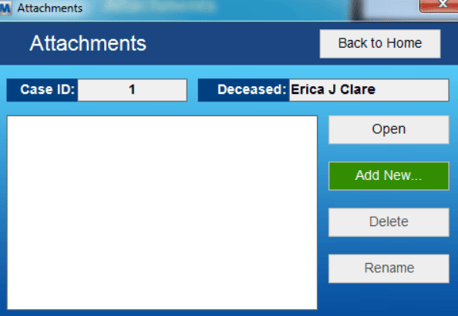The Attachments is where you can attach any kind of file from outside of MiMS to your MiMS case for future reference.